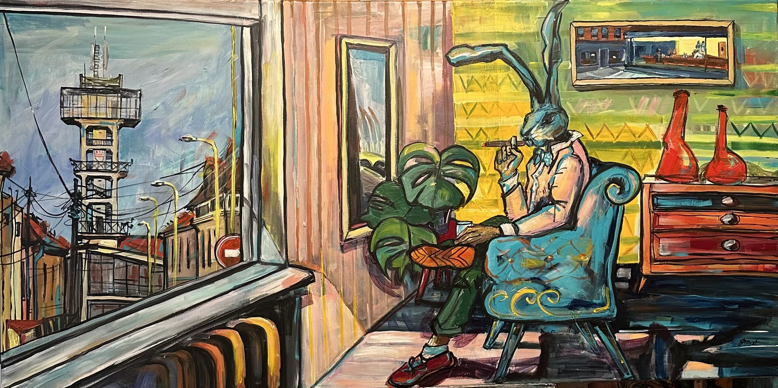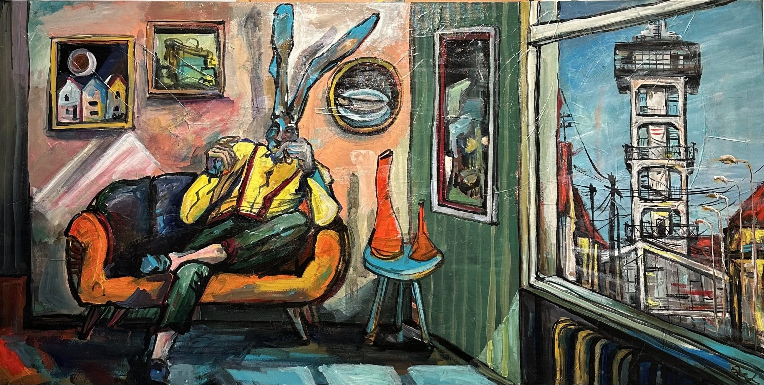 1 Lososová, vodárenská veža, rok 2022 rozmer 60/160cm akryl